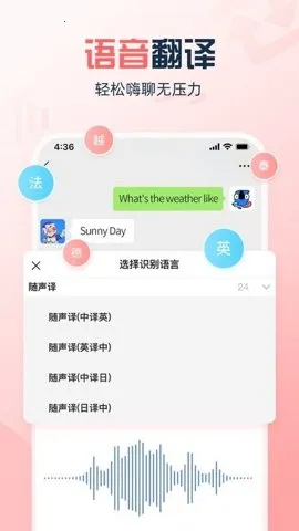 3. 多语种实时翻译输入:支持中英日韩俄等多语言互译,说中文自动转外语,跨国聊天沟通无障碍。