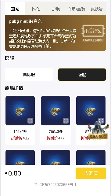 1、进入平台后,首先要找到自己需要充值的游戏。比如我现在打算给“PUBGM”充值,找到这款游戏后点击它即可。