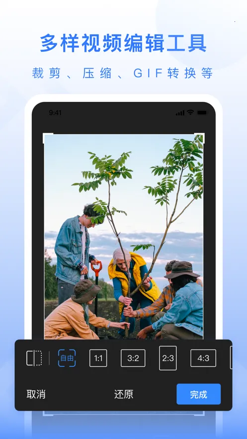 1、支持自由裁剪和按比例裁剪视频尺寸,适配不同平台发布要求。