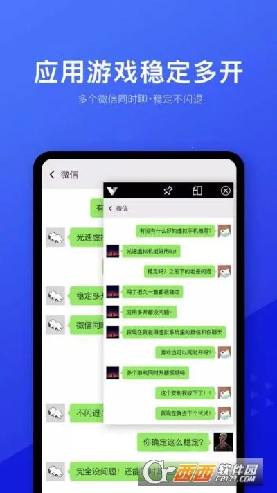 光速虚拟机app由深圳市智多互动科技有限公司推出,支持安卓11系统。能一键切换系统,提供后台运行游戏和微信分身功能,有独特内存管理机制与领先引擎,性能卓越,还可多开应用、保护隐私,操作便捷。