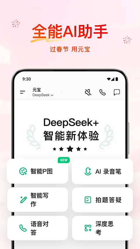 3. 丰富多样的功能应用。涵盖AI图片编辑、拍题答疑、语音通话、热剧直搜、音乐播放、AI绘图、代码支持等诸多功能,还联合创作者提供如AI头像、口语陪练、超能翻译等有趣实用的AI应用,全面提升用户在各领域的体验。