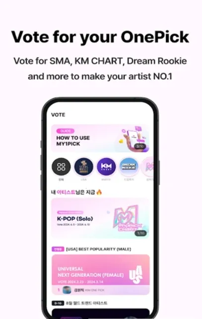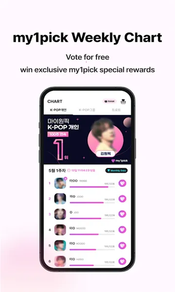 my1pick安卓版是全球KPOP粉丝平台,可投票应援,有机会得演唱会等门票及签名周边。提供广告支持、互动社区,界面优化、支持多语言。功能全,覆盖投票、票务、资讯等,操作便捷,方便粉丝追星。