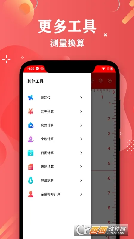 2. 多工具集成设计:突破功能单一局限,直尺、测距仪、量角器等整合,底部导航栏快速切换。