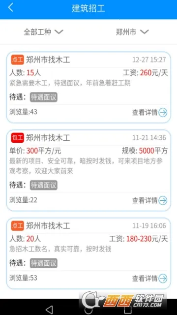 如果你正在建筑行业找工作或招工,那建筑招工类平台绝对是你的得力助手!这类平台功能超强大。它能让找工作的人快速在线查询心仪工作,还能结合自身能力发布找活信息,通过定位查询附近工人,也能智能记工记账,方便核对工资。对于招聘方来说,可在平台发布招工需求,通过筛选功能精准找到合适工人,还能查看招聘数据。而且平台严格审核企业资质,确保招聘信息真实。有了它,打破了传统招工的信息壁垒,大大提升了建筑企业与工人的匹配效率。不管是找工作还是招工,都变得更轻松、高效,节省了不少时间和精力,让建筑劳务领域的求职招聘变得更加便捷有序。