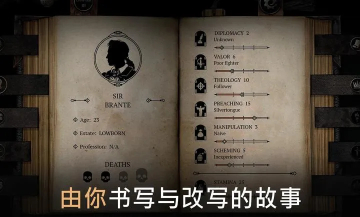 2. 深度角色塑造:从出生到终亡,全程体验布兰特爵士的人生。玩家做出的每个决定都有代价,要为生存而战,培养角色特质,英雄的每项技能都会影响其性格、世界观与人际关系,解锁新天赋与剧情分支。