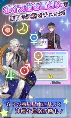 这款游戏充满魅力。剧情设定独特,一扇闪耀大门开启星辰世界,邂逅十二位个性王子与神秘守护者,使命在肩,故事引人入胜。声优阵容超强大,浪川大辅等众多知名声优倾情演绎,为角色赋予鲜活灵魂。特色功能丰富,每日星座运势、详细性格分析、私人日记记录、王子换装等,满足多样需求。无论是想了解星座、享受声优魅力,还是放松互动,它都能带来快乐,让生活充满光彩,是一款值得体验的佳作。