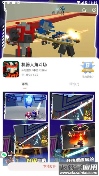 这款游戏真的太好玩了!游戏画面精美绝伦,机甲炫酷多样,战斗体验超刺激。各种战斗模式丰富有趣,关卡挑战繁多,匹配技能、自由打法带来别样感受。在这里,能操控机器人尽情奋战,用实力战胜强敌。升级机甲、解锁技能,还能自由改装机器人,武器多样可灵活切换。无论是故事模式还是无尽模式,都充满挑战与乐趣。而且游戏运行流畅,打击感十足,每一次攻击都让人热血沸腾,强烈推荐给喜欢动作游戏的玩家!