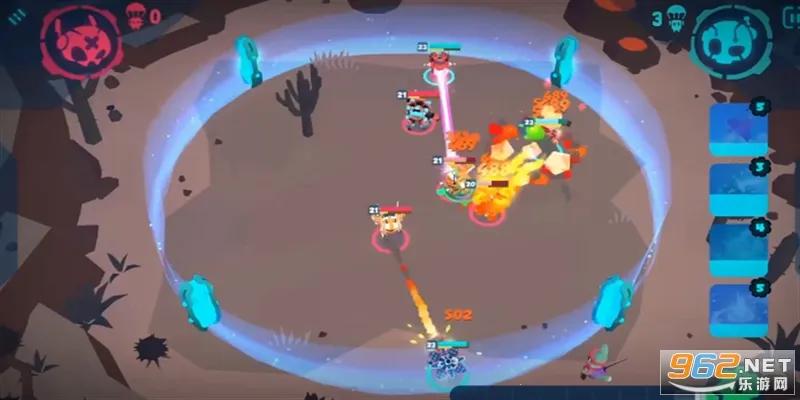 3. 拥有3D画面,从上至下视野观看,操作手柄移动、交谈,竞技场护卫自动攻击,还能在城市商店获取新技能和机器人。