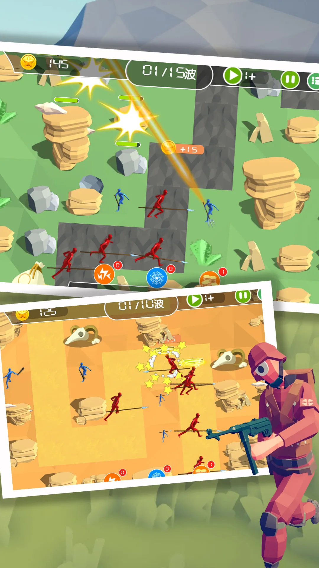 王者塔防保卫战是一款超刺激的塔防闯关游戏。在这游戏里,你能自由建造军队来打败敌人。玩法简单易上手,老少咸宜。它有全新塔防玩法,包含多种新颖元素,在不同关卡中设置。面对无尽进攻的敌人,你要完成挑战。这里兵种丰富,每个都有特定用处和不同效果,不同兵种搭配能产生不一样的强大力量。你需要展现脑力思考,组建合适阵容应对各种强力敌人。游戏风格另类,画风简单但内容丰富,还有轻松有趣的背景音乐和音效,能放松心情,还可自由设置。通过消灭敌人、闯关挑战,你能成就王者巅峰,完美保卫家园,获取最后胜利,享受这场精彩刺激的策略较量。