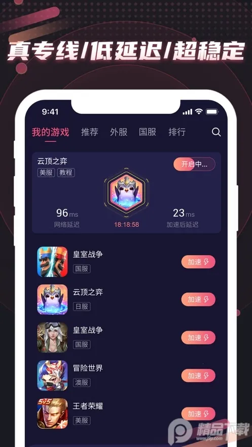 1、全球电竞级线路搭载,金融级线路与AI算法结合,一键选取最佳线路,加速稳定流畅,大幅提升游戏体验。