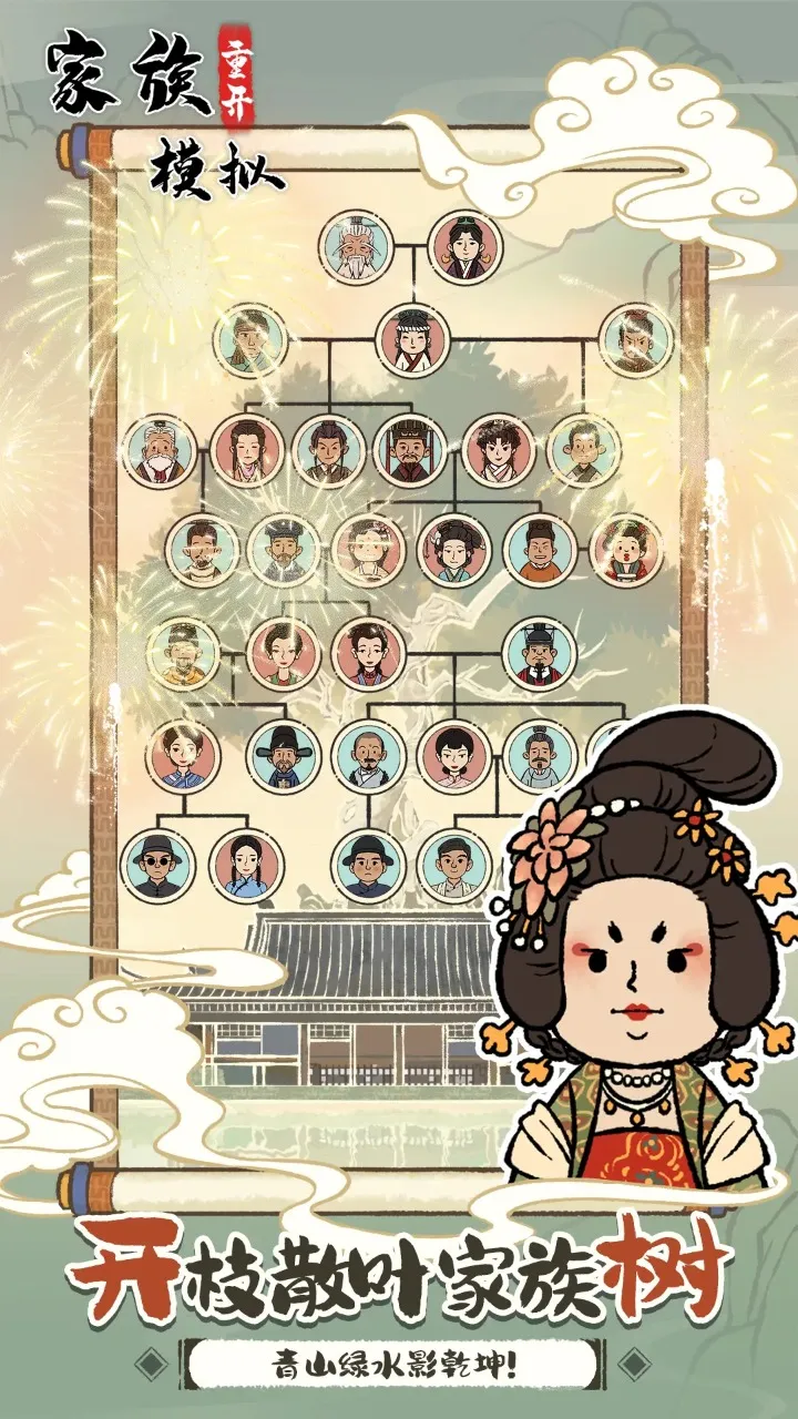 3. 修缮族谱玩法轻松休闲,需发挥敏捷才思找到族人在家族中的正确位置。