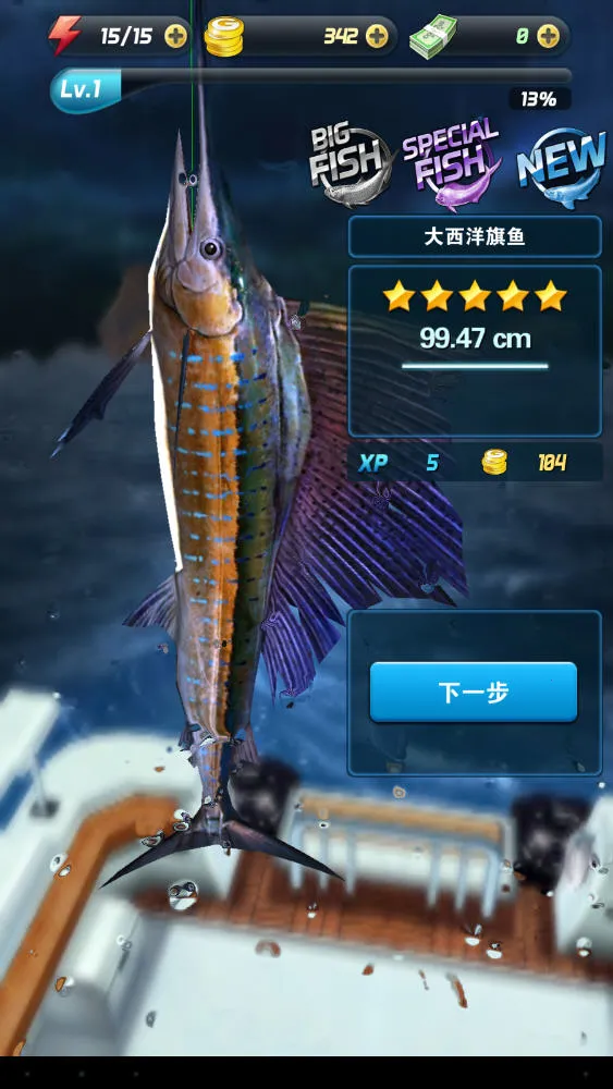 极致画面体验:场景和鱼种精心设计,细节与真实感出色,全3D画面让玩家感受如现实般的钓鱼体验,鱼儿动作逼真,收线曲线优美,鱼线颤动张力十足。