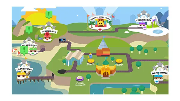 1. 延续清新简洁画风:采用简洁清新的扁平设计,简洁之余不乏细节。画面中物体阴影会随着镜头变化,旗帜会随风轻轻摆动,水花会随着动作溅起,这些小细节让场景更生动。