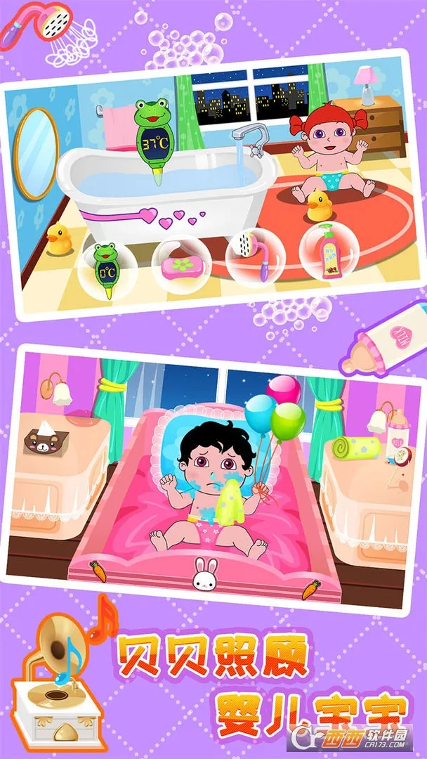 2. 互动反馈真实:宝宝反应丰富,正确护理有开心笑容鼓励,错误操作会提示改进,培养多种能力。
