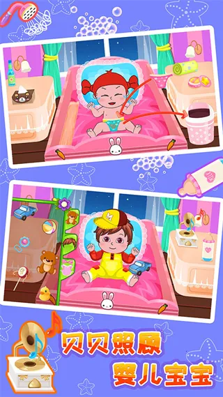贝贝照顾婴儿宝宝是可爱卡通风格的亲子互动模拟游戏,含洗澡、穿衣等照料环节,育婴流程科学,互动反馈真实,场景丰富,能让孩子在趣味体验中认识生活常识,培养自理与责任感,还有多种特色玩法。