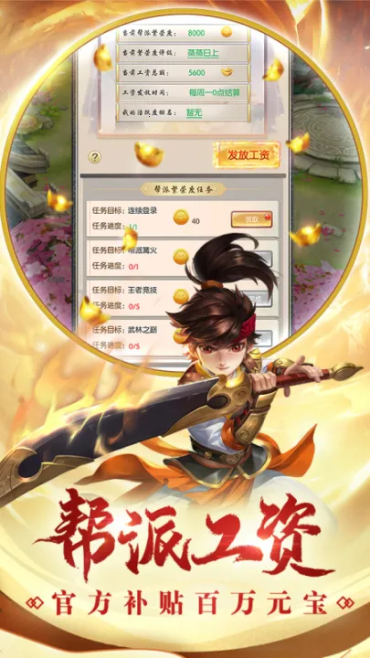 4. 竖版操作,离线挂机:采用自动战斗模式,竖屏设计操作简便,即使离线也能收获丰厚回报,轻松畅游江湖、快速成长。