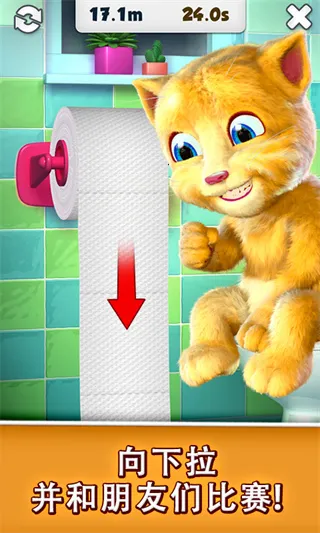 丰富互动玩法,能与金杰猫一起玩拼图、比赛拉纸巾长度等,还有喂食、洗澡、刷牙等多样操作,乐趣无穷。