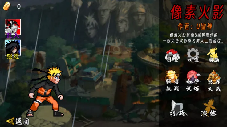 2. 采用复古像素画风搭配现代打击特效,完美再现火影忍者中毁天灭地的忍术对决,从木叶村到终末之谷,多个经典战场等你来战。