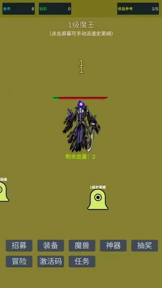 《小小史莱姆推翻大魔王2026最新版本》是一款轻松幽默的放置养成冒险游戏。玩家带领史莱姆军团对抗魔王,融合策略养成元素,操作简单,有反套路设定、吞噬进化等亮点,躺平变强,轻松拯救世界。
