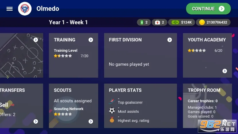 3. 能管理球队,通过转会操作增强实力,率领球队争夺最高荣誉,登上排行榜。