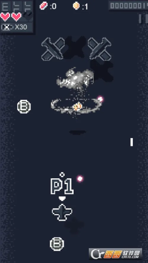 5、玩家的飞机也是有小炮弹的,如果想加大敌机的伤害,可以触碰红色框框选择的道具,这项工具可以让飞机的导弹攻击力变强,导弹数量变得更多。