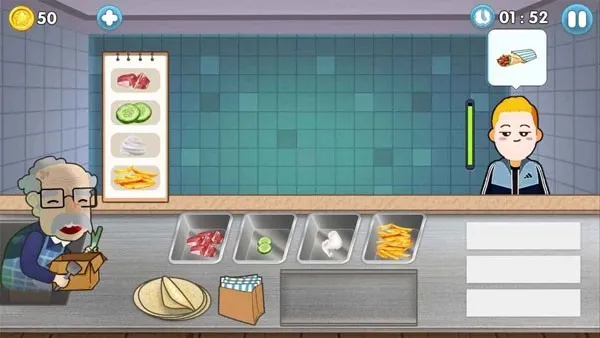 想体验经营小店的乐趣吗?沙威玛传奇小店手工类游戏能满足你!在这里,你将化身美食店老板。游戏玩法简单易懂,点击进入游戏后,按照客人要求制作各种美味食物就能赚钱。比如先点击左边老人添加调料,客人上门点单后,按要求完成制作卷饼给客人即可。随着游戏进行,还能一步步扩大餐厅规模。它能解决你想体验经营店铺、制作美食的需求。既能制作出各种好吃的食物获得客人夸奖,将小店发扬光大,又能通过准确完成不同客人订单,合理定价吸引顾客。而且采用简单模拟经营玩法,轻松成为老板服务客人,获得金币升级。还提供丰富食材,可研发新菜品抓住客人的胃。快来试试,享受经营美食小店的快乐吧!