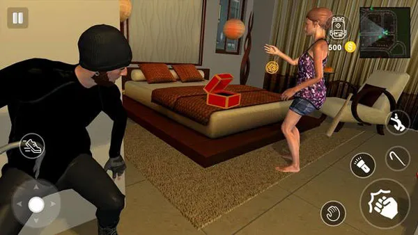 有着高自由度的开放世界,城市地图自由漫游,可自主选择目标豪宅或银行。白天踩点标记贵重物品位置,夜晚行动时制定最优路线。同一关卡支持多种潜入策略,正面硬闯或隐秘绕行,重复挑战可解锁隐藏物品与更高评分。