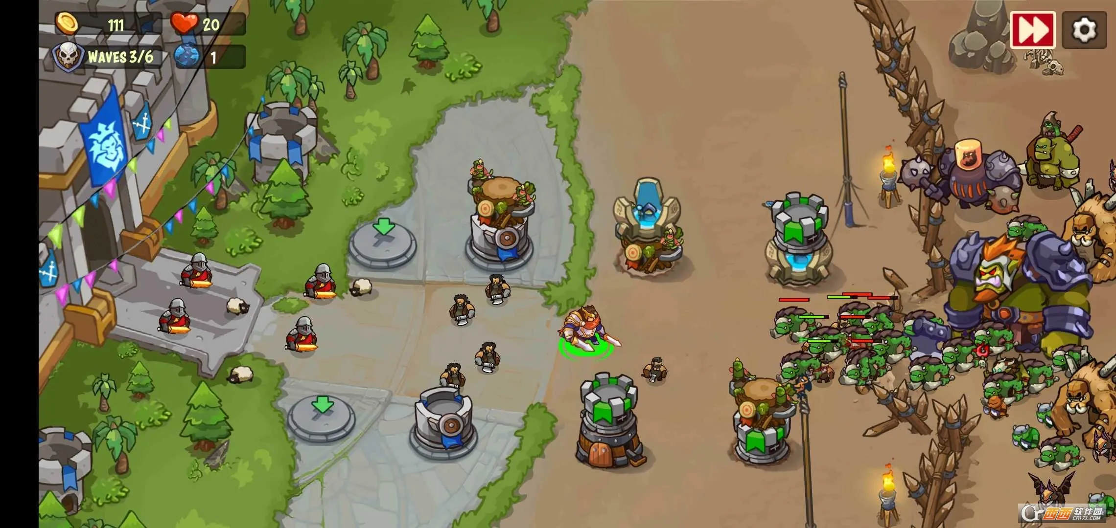 王国防御战争前线是清新卡通风策略塔防手游,玩家用炮塔和城堡守卫王国,关卡巧妙。支持离线,新手易上手。有多种地形、丰富敌人,炮塔可堆叠组合,英雄与炮塔可升级,单机模式,画面精美,无需充值。
