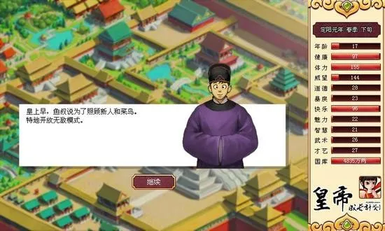 这是一款以古代中国为背景的策略手游。玩家扮演初登基的年轻皇帝,通过治理国家、发展经济、选拔人才、处理政务及规划军事行动等,推进国家走向强盛统一。游戏中,玩家要应对复杂朝堂局势与随机事件,凭借策略和决断力引领王朝稳定发展。历史沉浸感十足,完整演绎从登基少年到霸业明君的成长线,朝堂权谋与沙场烽火交织。政治风云变幻,官员任免、宫廷政变等事件随机触发,每次抉择都影响国运。地理谋略丰富,国力地形、外交态势实时变动,需因地制宜制定统一方案。还有后宫百妃、智谋生存等特色,新手能快速上手,轻松掌控朝局,冲破敌军重围,一统天下。
