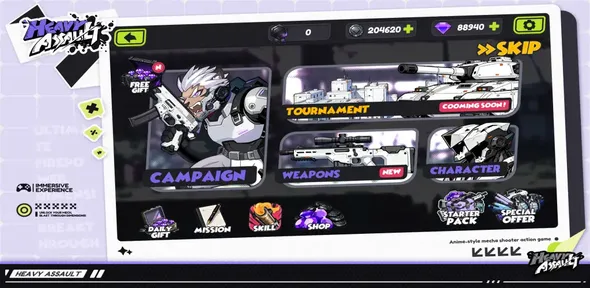 如果你想体验重武器战斗的乐趣,享受紧张刺激的射击快感,那这款游戏绝对适合你!它有着直观的操作和丰富的策略搭配,除了基础移动射击,还能使用手榴弹空袭等战术。关卡分章节且有不同难度,休闲玩家能享受闯关乐趣,追求挑战的玩家也有充足的重复可玩性。通过完成关卡挑战获取资源,可强化角色属性、解锁新武器装备,构建自己独特的战斗风格。多样的武器选择和技能搭配,每次战斗都有不一样的体验。而且它支持离线游玩,无需网络就能随时随地享受战斗。鲜明的美术风格,搭配动感音效和打击反馈,营造出超沉浸的战场氛围。不管你是喜欢街机风格的老玩家,还是追求爽快射击体验的移动端用户,都能在这找到持续挑战的动力,快来加入游戏试试吧!