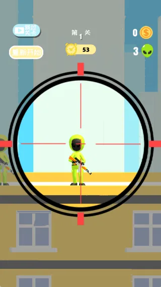 3、特色助力道具:可自由使用专属助力道具,能快速定位隐藏外星人或强化狙击能力,帮助玩家化解难题,攻克高难度狙击关卡。