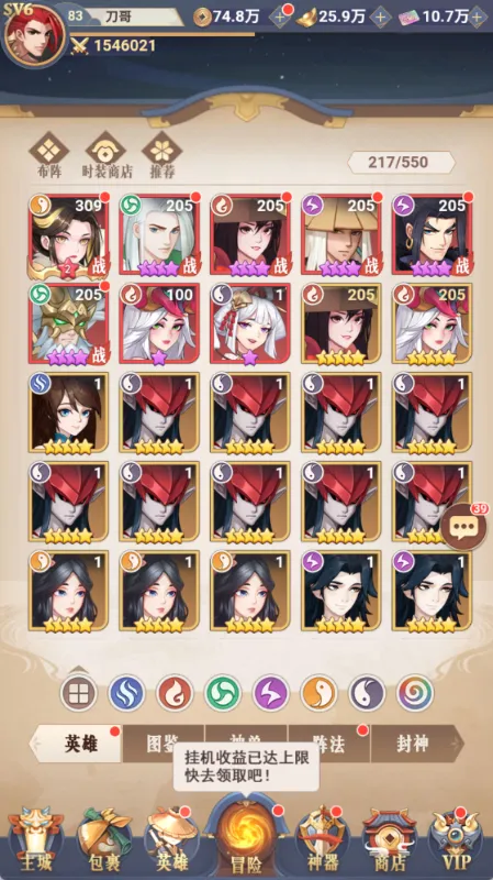 2、丰富养成玩法:可通过抽卡获取大量英雄,还能对角色升级、添加装备、强化装备、使用丹药培养等提升战斗力。