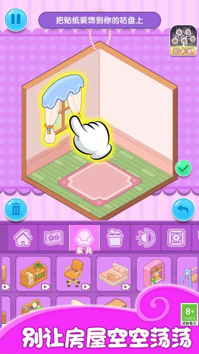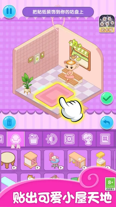 这款游戏真的超棒!它是一款很温馨的休闲益智小游戏。有超多可爱房间,能用各种贴纸装饰,还有不同风格家具摆件,自由度超高。**贴纸有动态效果**,小屋更生动立体。能自定义布局,海量玩法免费畅玩。亮点也不少,可保存图片参加设计比赛,关卡内容不同,新手易上手。玩法简单有趣,贴贴纸能放松心情,完成任务解锁稀有贴纸,参观邻居小屋还能学习装扮理念。绝对是打发碎片时间、满足创作欲的最佳选择,快来下载体验!