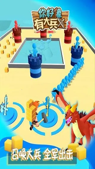 你好像有大兵是一款像素方块人造型的休闲策略战争手游,有卡通Q萌画风与立体场景。玩家指挥士兵组阵容冒险,合成小兵、收集资源、招募士兵,通过策略部署赢胜利,还有多样关卡与宠物玩法。