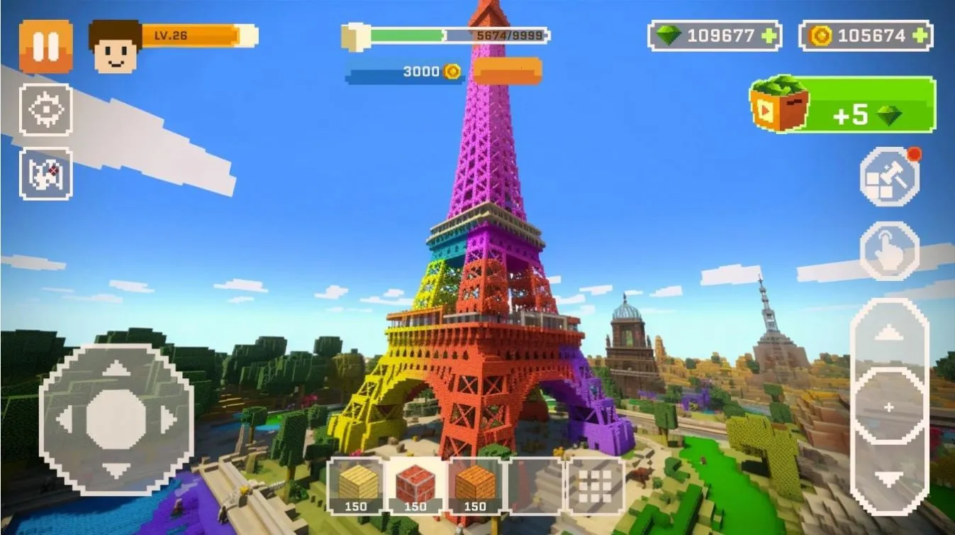 1. 高度自由的创造乐趣,可随心所欲塑造每一寸土地,自由设计搭建各式建筑,构建全新社会体系。