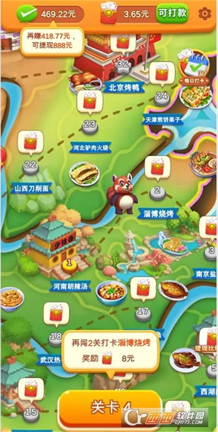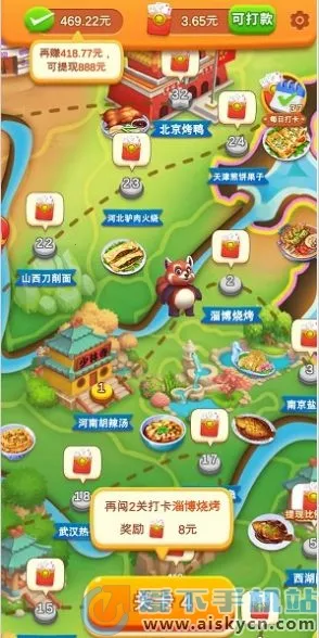 3. 环球旅行背景设定,能欣赏各地美食打卡画面,突破关卡还有丰厚回报。