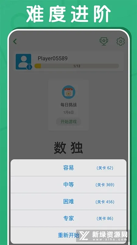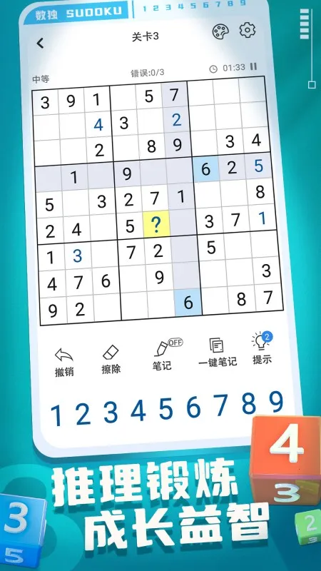 2. 难度分级:设置入门、中等、大师三种难度,让玩家能循序渐进,逐步提升,从新手成长为数独专家。