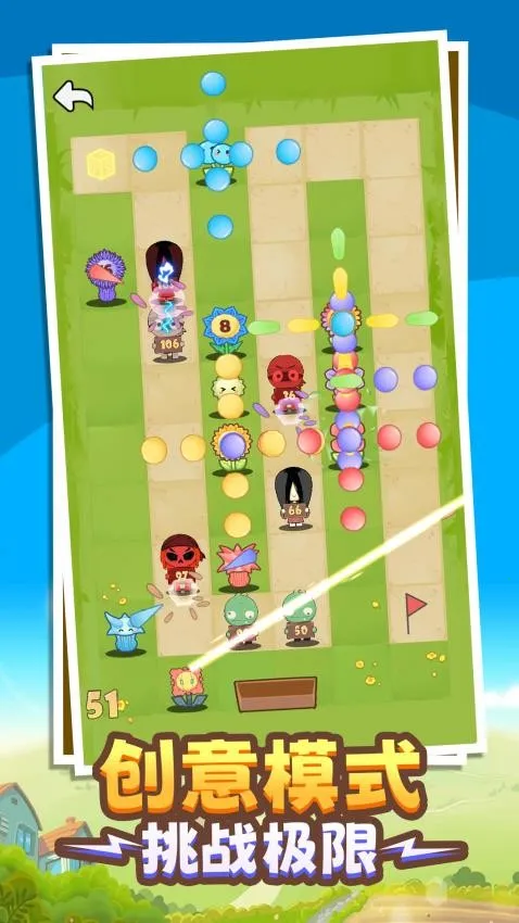 1. 多种可爱小花登场,利用其攻击能力抵御僵尸。