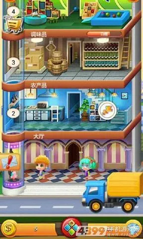 2. 全屏点击操作:全屏点击触控的选择性操作模式,可点击楼层查看商店属性、选择商品制作、完成订单任务、收取货款等,经营过程轻松自由。