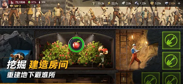 3. 多样玩法体验:可走出避难所在荒地寻找资源、建立营地,也能与朋友结盟或加入联盟共同对抗僵尸,通过加速对方建设等互相帮助,还有野外探险、团队协作等丰富玩法。