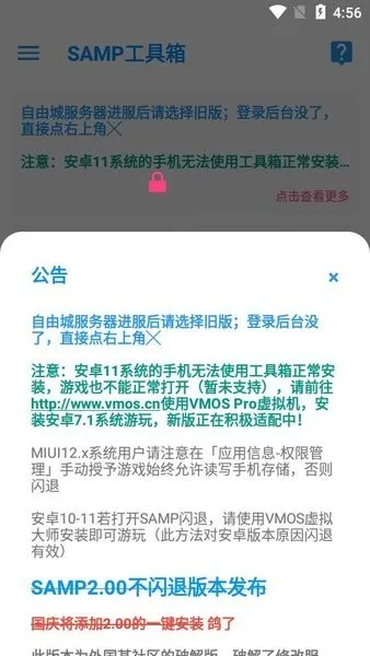 samp联机工具手机版是侠盗猎车手:圣安地列斯的联机助手,能让玩家连接服务器与全球玩家互动,支持多种服务器模式,具备跨平台连接等特性,还有丰富指令系统,社区活跃且服务器可高度自定义,完全免费开源。