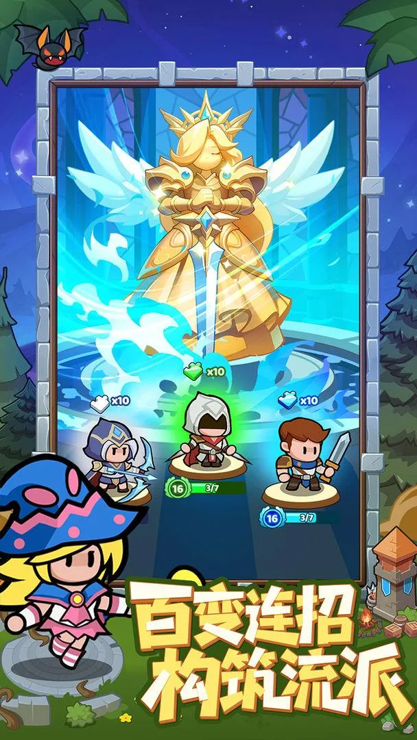 2. 卡牌抉择无限可能,升级可从随机卡牌定制王国,奇幻建筑与技能带来多样策略。