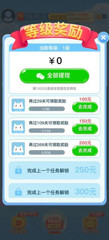 3. 红包奖励丰厚,完成关卡越多,收获越多。