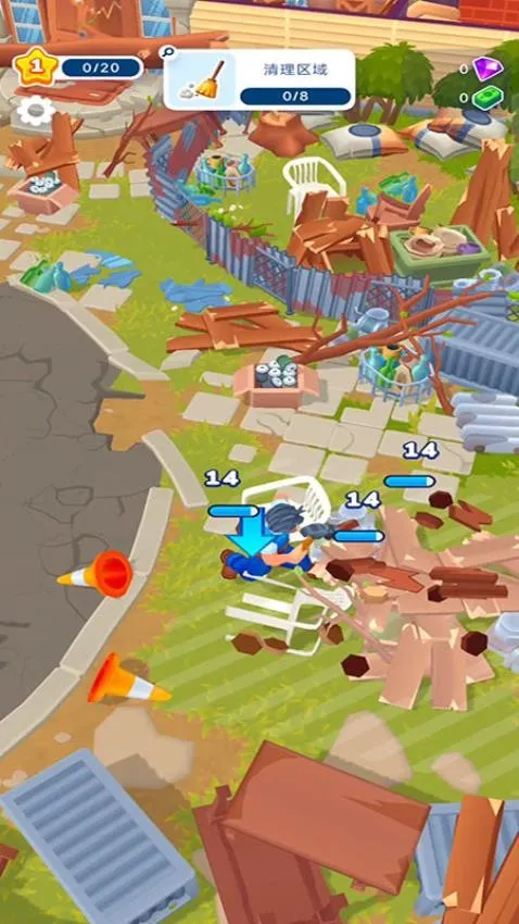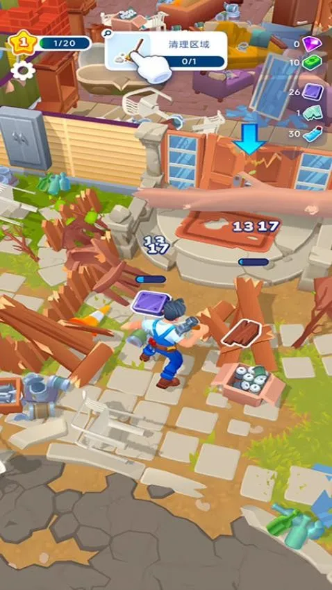 1、刚进入到游戏中你便可开始清理蓝色箭头所在的区域,这样即可完成相关任务。