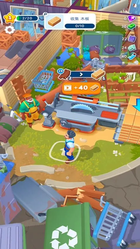 装修设计师一般被称为房屋改造模拟游戏。它能让你轻松体验装修与创造的乐趣。在游戏里,你可以清理废墟收集材料,亲手打造从墙面到家具的每个细节,自由装饰梦想之家,丰富的装饰品任你选择,展现独特设计风格。这里没有压力没有计时,你只需放松心情享受。它有诸多特色功能,比如能处理木材得到想要的造型,获得建设工具并在合适时使用,查看每个任务的进度,用专属机器清理污渍,完成建设任务可获升级经验,还能铺设独特造型的地砖。玩法也很简单,刚进入游戏清理蓝色箭头所在区域就能完成任务,跟随箭头移动可查看清理目标获积分,收集木板制作长短相同的木板,根据任务找到别墅入口和维修工具处理问题。快来下载这款装修设计师游戏,开启你的房屋改造之旅吧!