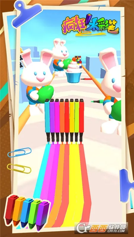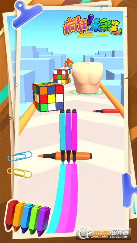 疯狂水彩笔是一款休闲跑酷游戏,玩家操控水彩笔在多彩场景中前进,避开障碍收集同类彩笔,为公主裙摆上色赢积分。游戏操作简单,关卡丰富,画风清新,无限金币钻石版更添趣味,适合打发闲暇时光。