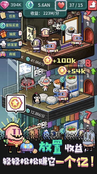 如果你喜欢美食经营类游戏,那吃货王子绝对值得一玩。在这款游戏里,你能跟随主角开启征服宇宙的美食之旅。你可以亲自研发上百种独特菜品,探索丰富的美食研发体系。还能经营并扩展自己的美食店铺,逐步壮大美食帝国,最终建成专属的美食高塔。这里有内置模拟股市,合理投资就能获取可观收益。操作也很轻松,简单点击与放置就能不断扩张美食塔。而且能招募各种有趣的店长,数十种店长策略自由组合,助力美食事业。游戏数值全面调整,体验更流畅,还新增了美食星球、店面装饰功能,剧情引导也更完善,新增了多位角色。快来本站下载吃货王子,用美食的力量统治宇宙吧,满足你成为美食经营达人的需求,享受轻松又有趣的游戏体验。