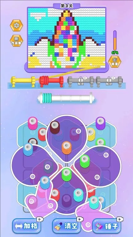 1. 游戏以毛线为主题,其柔软质感与色彩搭配,视觉舒适且操作有趣。
