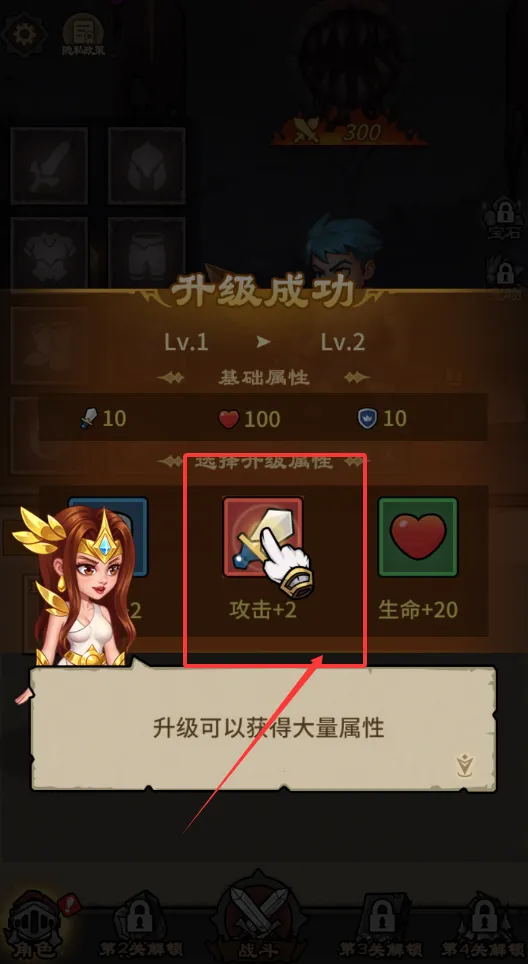 1、初始阶段跟随剧情指引熟悉操作环境,随后进入核心的爬塔打怪流程。在战斗中积累资源并逐步解锁各类功能。