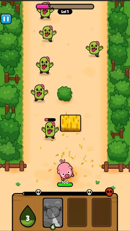 1. 扮演勇敢小猪抵御僵尸侵袭,策略保农场安全,每关结束可从三种升级中选其一。